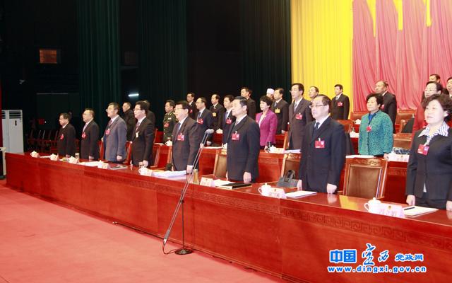 上午9时许,郑红伟宣布:定西市第四届人民代表大会第三次会议开幕!全体代表起立,奏唱《国歌》。