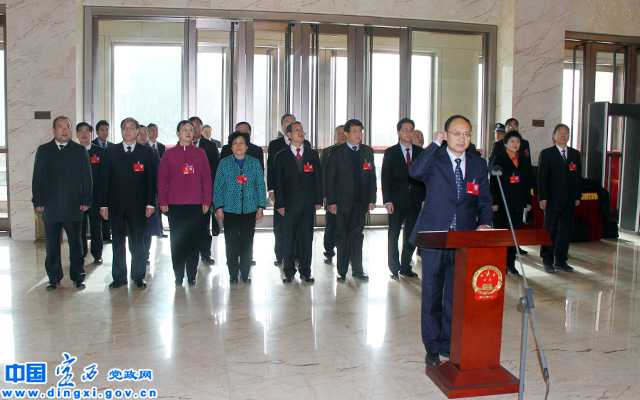 在庄严肃穆的气氛中,郑红伟宣布宪法宣誓仪式开始,奏唱中华人民共和国国歌。国歌奏唱完毕,宣誓人王钧左手抚按宪法,右手举拳,面朝国徽,宣读誓词:“我宣誓:忠于中华人民共和国宪法,维护宪法权威,履行法定职责,忠于祖国、忠于人民,恪尽职守、廉洁奉公,接受人民监督,为建设富强、民主、文明、和谐的社会主义国家努力奋斗!”